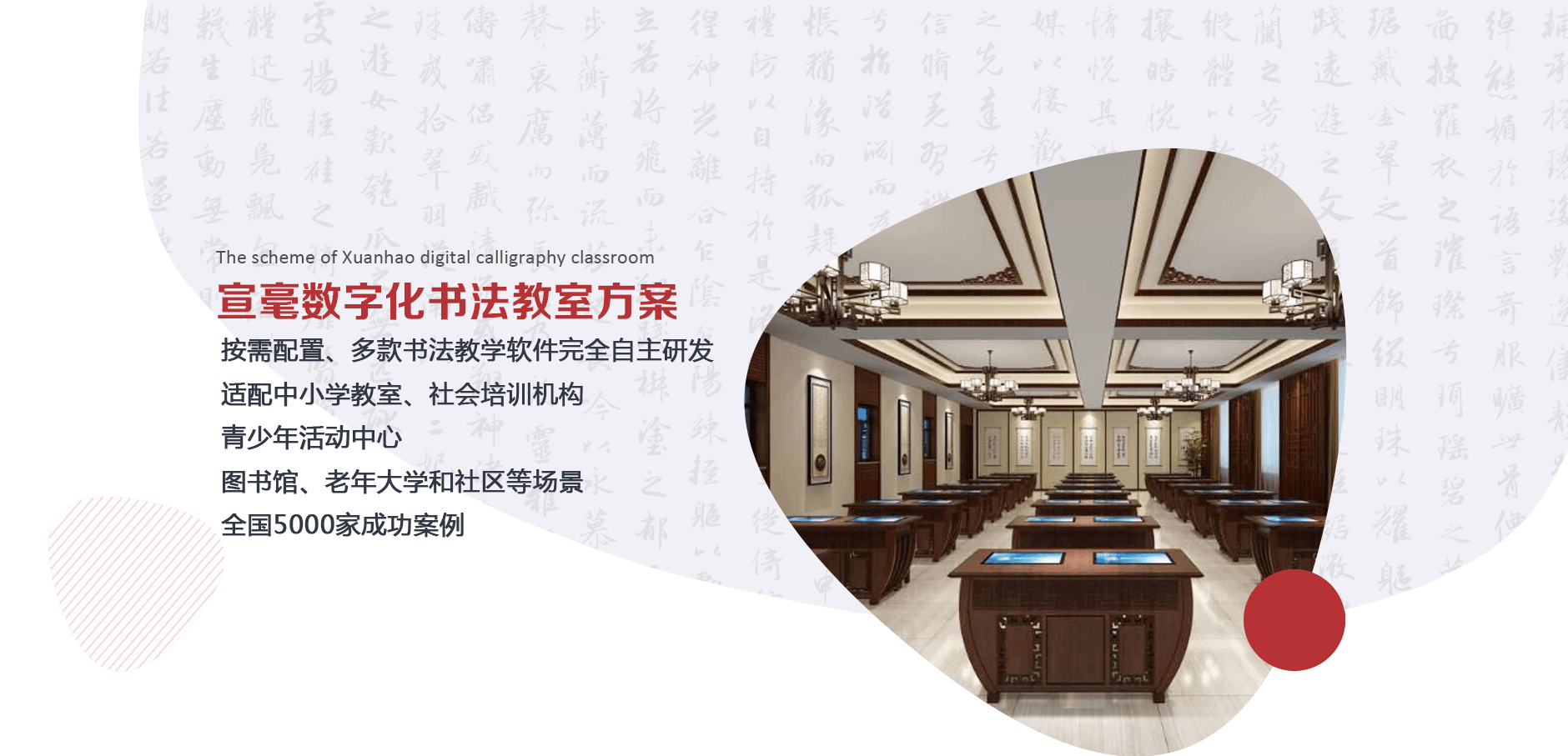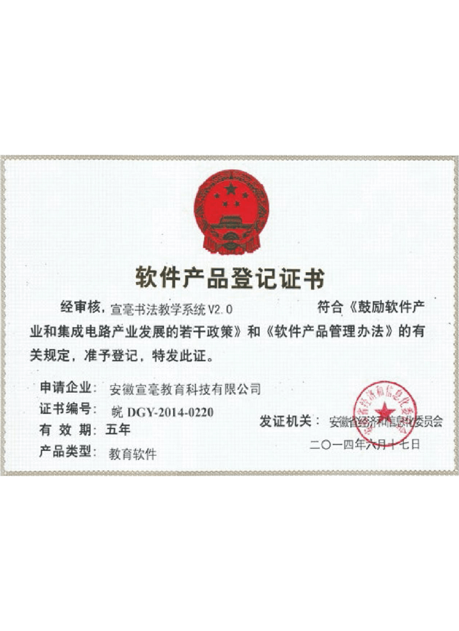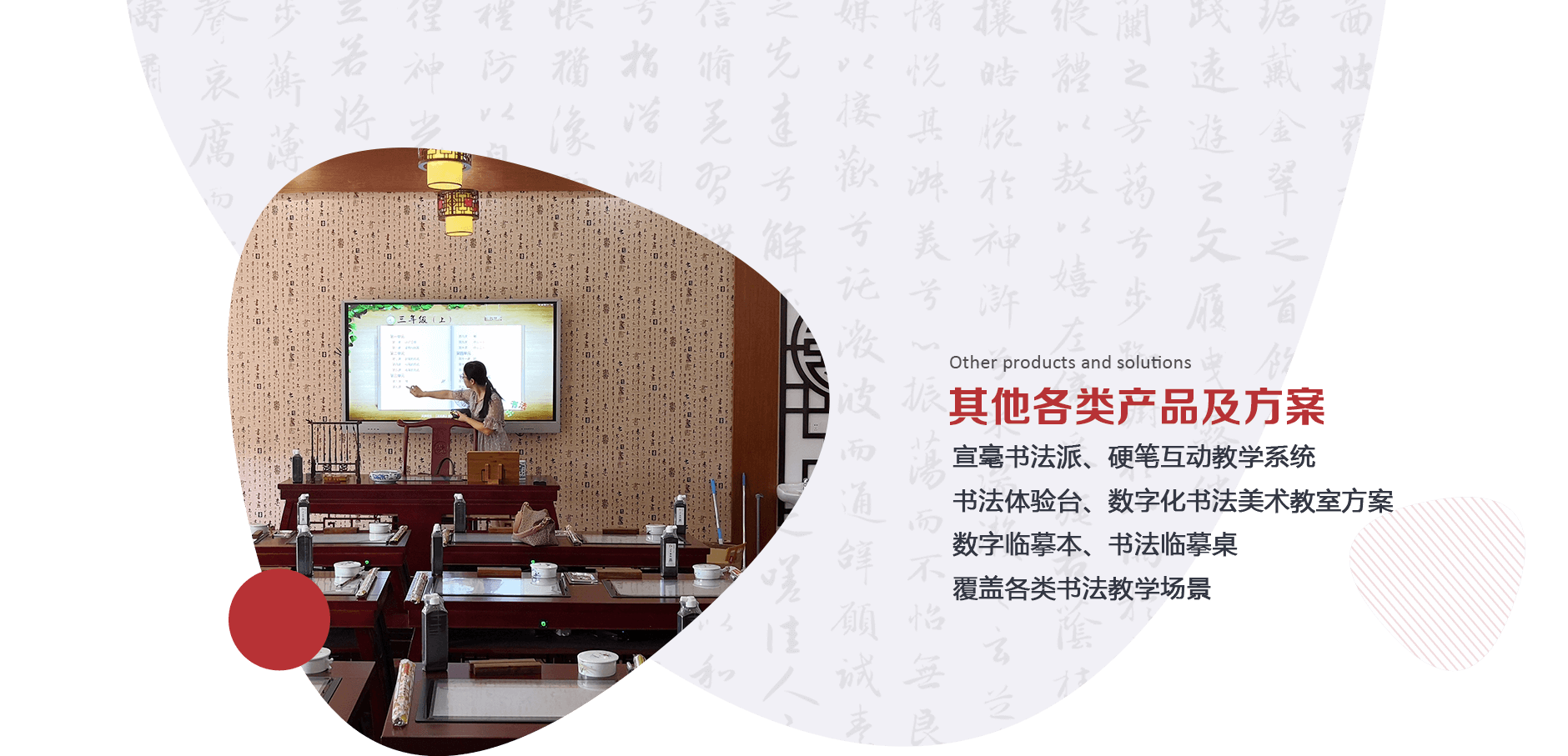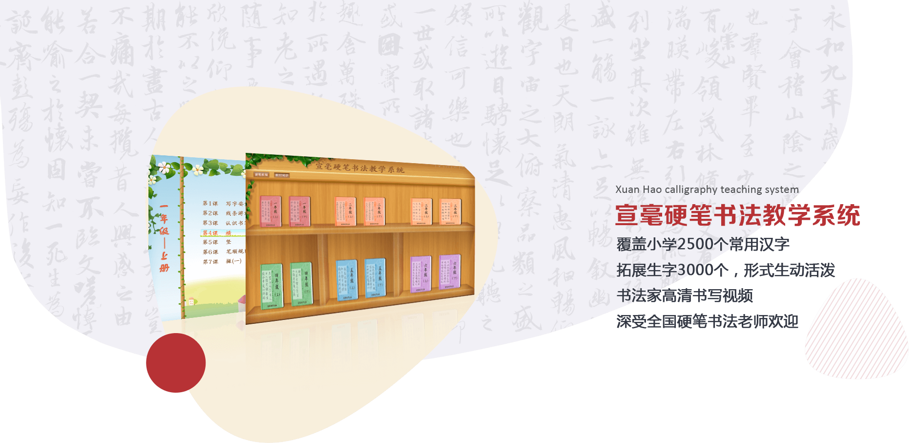 宣毫教育已成功研發(fā)《宣毫?xí)〝?shù)字化教學(xué)系統(tǒng)》、《宣毫硬筆書法教學(xué)系統(tǒng)》、《宣毫?xí)ㄅ伞贰ⅰ缎習(xí)ㄅR摹練習(xí)系統(tǒng)》等產(chǎn)品。